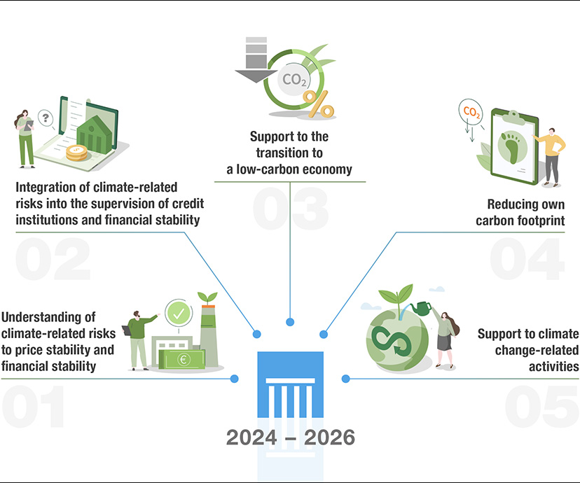 Climate change presents a risk for economic and financial stability and thus impacts the achievement of our primary objective and other tasks within our competence. Therefore, our Climate Strategy focuses on the identification and management of climate-related risks that may impact price stability and the financial system, as well as on support to the process of transition to a low-carbon economy and greening the financial system.