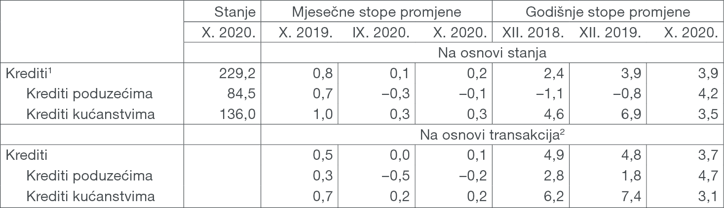 1 Osim kredita poduzećima i kućanstvima uključuje i kredite lokalnoj državi i ostalim financijskim institucijama.