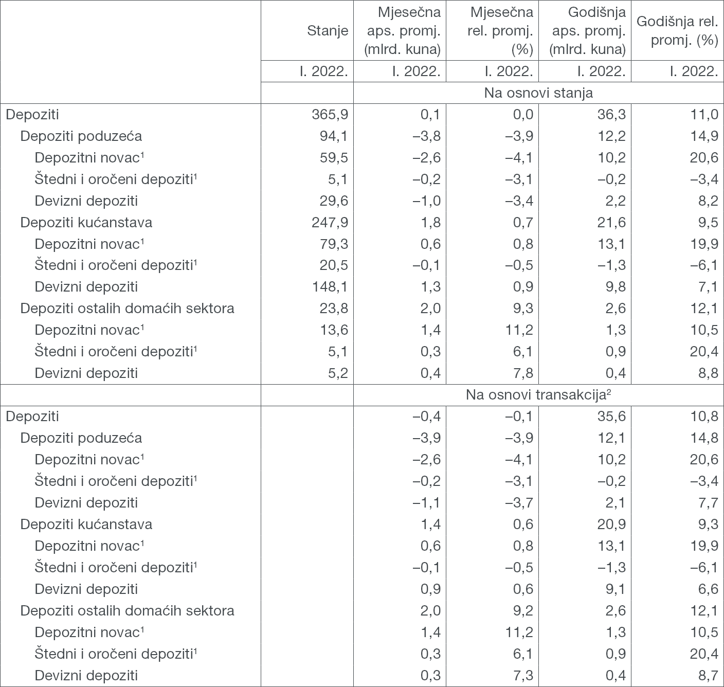 Detaljni podaci monetarne statistike zaključno sa siječnjem 2022. mogu se pronaći na: