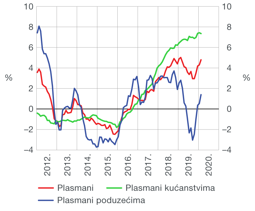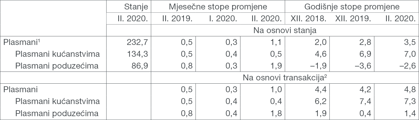 1 Osim plasmana kućanstvima i poduzećima uključuje također plasmane lokalnoj državi i ostalim financijskim institucijama.