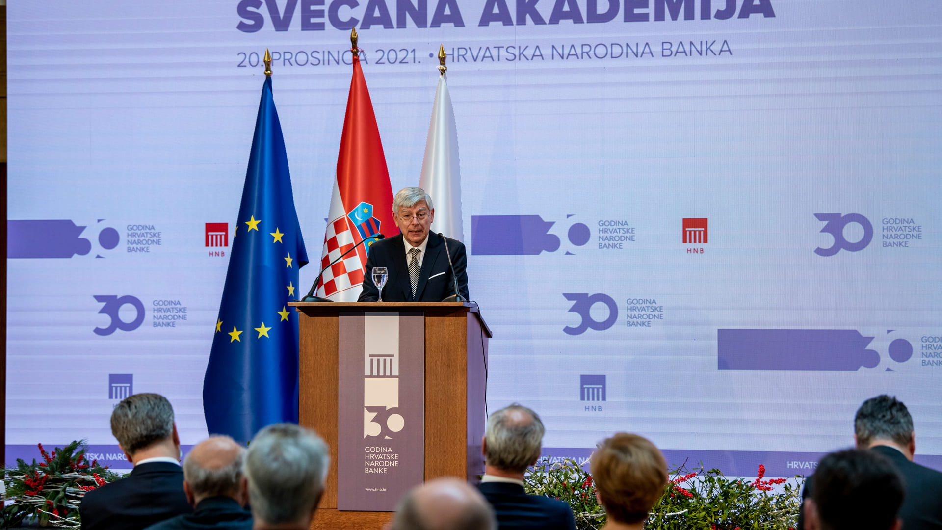 "U proteklih smo trideset godina bili uspješni i svojim djelovanjem smo pridonijeli općoj stabilnosti i stvaranju povoljnih uvjeta za razvoj gospodarstva. O tome jednostavno svjedoče činjenice. Hrvatsko nam je društvo povjerilo dva velika zadatka – čuvati stabilnost cijena i osiguravati stabilnost financijskog sustava. Oba smo cilja ostvarili. Institucionalno pamćenje nam kazuje da je već na samom početku svog puta hrvatska središnja banka jasno zastupala i stav o potrebi da Hrvatska uz izgradnju vlastitoga monetarnog sustava istodobno usvoji i načelno opredjeljenje da radi ostvarivanja vlastitih društvenih i ekonomskih interesa što prije uđe u integracijske procese, a konačno i u monetarnu uniju s drugim europskim zemljama", rekao je danas guverner HNB-a Boris Vujčić na Svečanoj akademiji u povodu 30 godina hrvatske središnje banke. Istaknuo je da je Hrvatska narodna banka danas članica Europskog sustava središnjih banaka, članica bankovne unije i uskoro članica eurosustava. "U tom društvu HNB je već sada ravnopravni partner, što nam daje samopouzdanje i uvjerenje da ćemo kao središnja banka unutar europodručja ne samo sudjelovati nego i sadržajno pridonositi njezinu daljnjem razvoju, na dobrobit hrvatskoga i zajedničkoga europskoga gospodarstva i društva. U 30 godina svog djelovanja Hrvatska narodna banka razvila se u suvremenu, samostalnu i profesionalno snažnu instituciju s visokom razinom integriteta i kompetencija zaposlenika. Zahvaljujem svima koji su u ovaj cilj uložili svoje profesionalne živote i svima onima koji tek dolaze i za koje se nadamo da će gajiti istu ljubav za struku i za opće javno dobro kojemu služimo", naglasio je guverner.