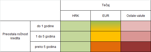 Napomena: Zelena boja označuje nizak rizik, žuta i narančasta rizik srednje razine, a nijanse crvene predstavljaju više rizike.