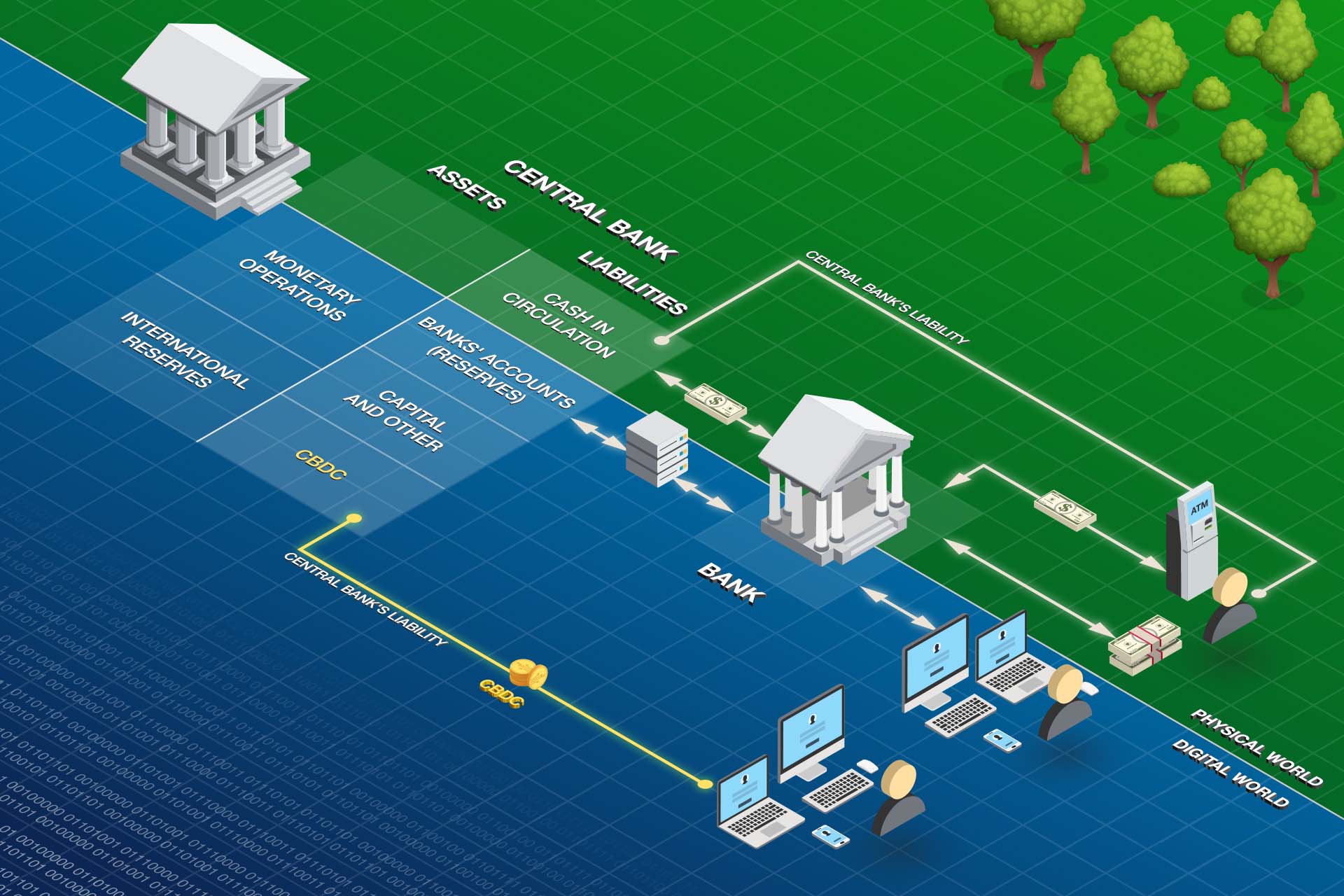 FIGURE 1 Overview of the monetary system and central bank balance sheet with the CBCD