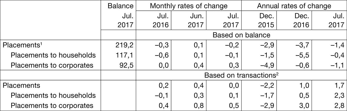 2 The transactions show changes excluding the effects of exchange rate changes, securities price adjustments and write-off of placements, including the sale of placements in the amount of their value adjustment.