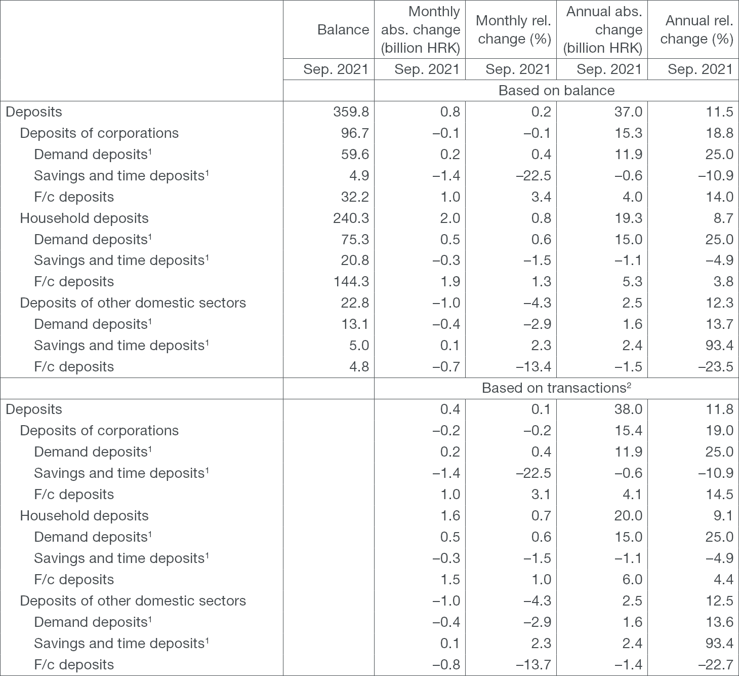 Table 3 Deposits (except the central government) and main components