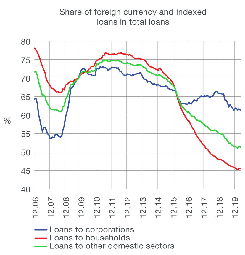 The outbreak of the coronavirus pandemic and uncertainty about its effects on the economy have refuelled fears of the depreciation of the kuna and strengthened the tendency to hold foreign currency. This has reversed the years-long downward trend of the euroisation of the banking system. If the growth of foreign currency deposits continues, it does not necessarily have to trigger depreciation pressures, as was the case in March this year, but it may reduce the availability of kuna loans because banks might turn to granting indexed loans.