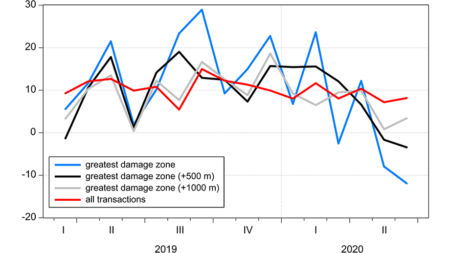 A smaller number of real estate purchases in the city centre does not necessarily need to be ascribed to the earthquake alone