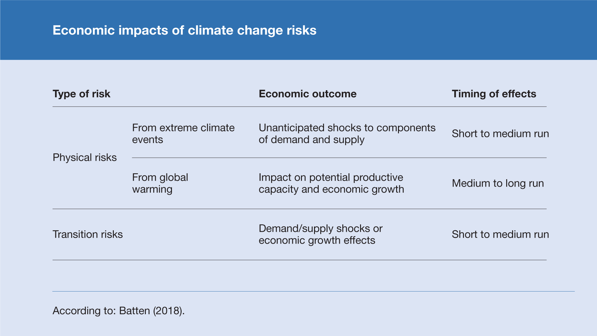 For details, see Batten, S. (2018): Climate change and the macro-economy: a critical review, Bank of England Staff Working Paper No. 706 ↑