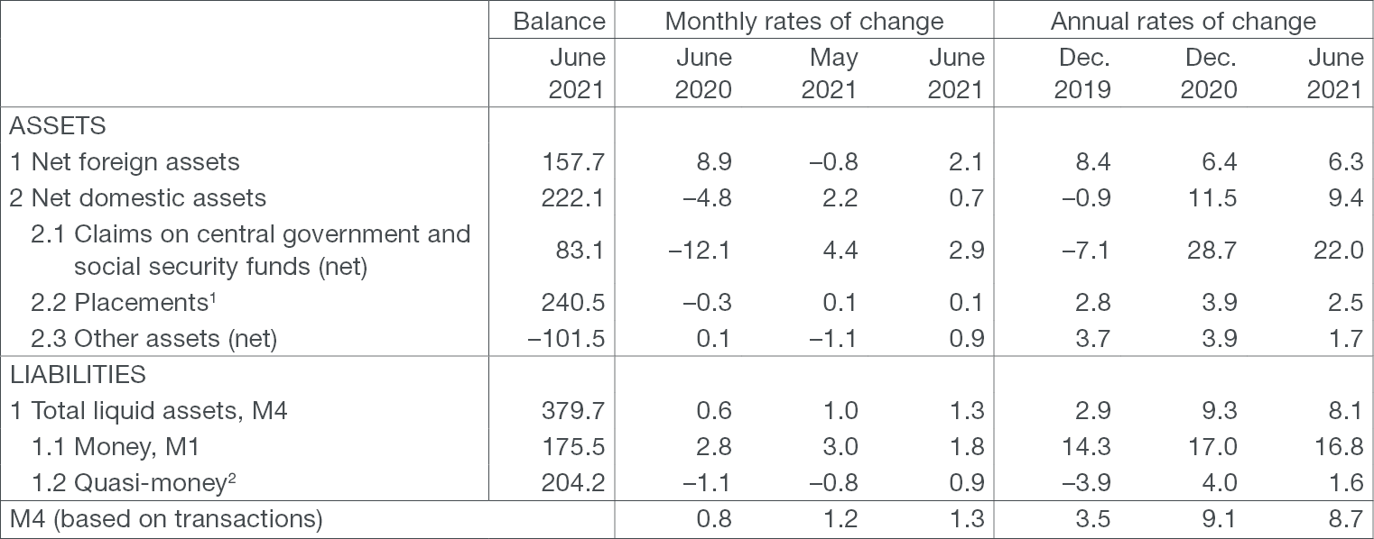 For detailed information on monetary statistics as at June 2021, see: