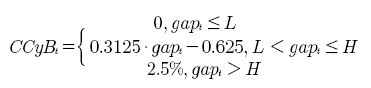 where the gap variable is the credit gap defined as the difference between the ratio and the trend, and L and H are the lower and upper thresholds of 2 and 10 respectively.
