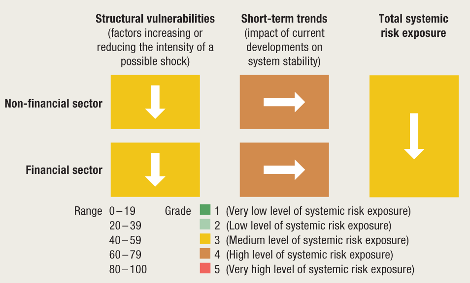 The macroprudential diagnostic process consists of assessing any macroeconomic and financial relations and developments that might result in the disruption of financial stability. In the process, individual signals indicating an increased level of risk are detected, according to calibrations using statistical methods, regulatory standards or expert estimates. They are then synthesised in a risk map indicating the level and dynamics of vulnerability, thus facilitating the identification of systemic risk, which includes the definition of its nature (structural or cyclical), location (segment of the system in which it is developing) and source (for instance, identifying whether the risk reflects disruptions on the demand or on the supply side). With regard to such diagnostics, instruments are optimised and the intensity of measures is calibrated in order to address the risks as efficiently as possible, reduce regulatory risk, including that of inaction bias, and minimise potential negative spillovers to other sectors as well as unexpected cross-border effects. What is more, market participants are thus informed of identified vulnerabilities and risks that might materialise and jeopardise financial stability.