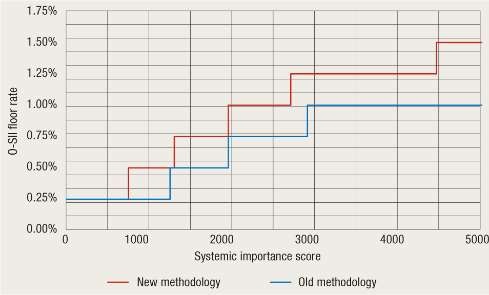 Figure 8 Comparison of floor levels for O-SIIs under the ECB's old and new methodology