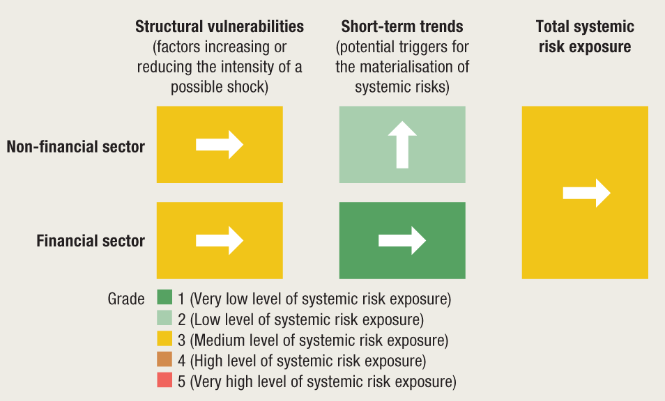 The overall assessment of the system's exposure to systemic risks has not changed since the last report, and they remain at a moderate level.
