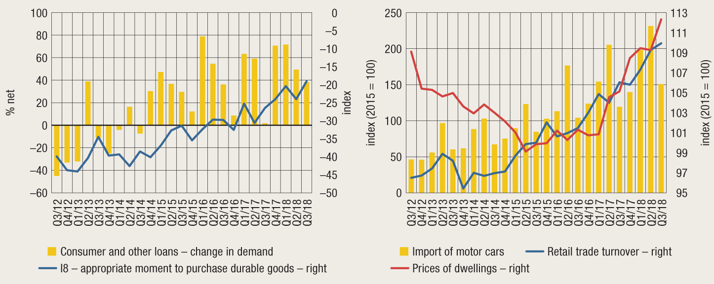 Figure 3 Change in demand for consumer loans (left) and related indicators of consumption (right)