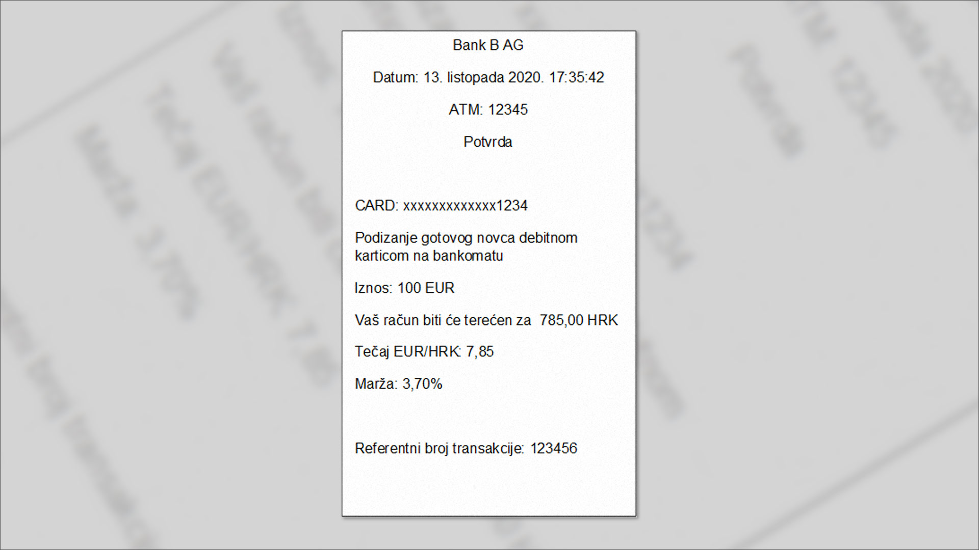 Slika 6. Potvrda plaćanja, tj. slip (slika i primjer teksta simbolični su)