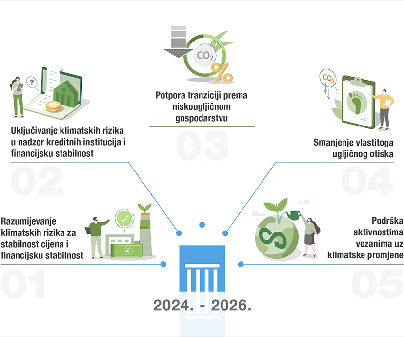Klimatska strategija HNB-a utvrđuje sljedeće glavne ciljeve i prioritete za iduće trogodišnje razdoblje:
