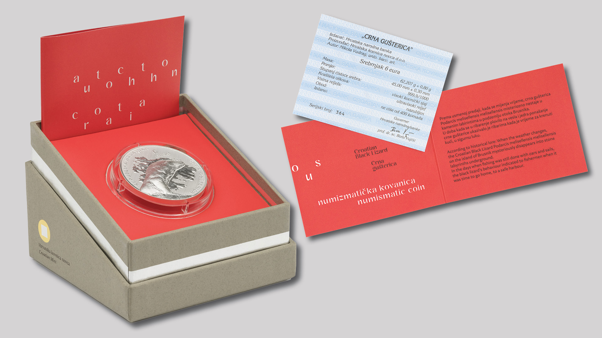 Odluka o izdavanju srebrne numizmatičke kovanice od 6 eura "Crna gušterica" objavljena je u "Narodnim novinama", br. 145/2024.