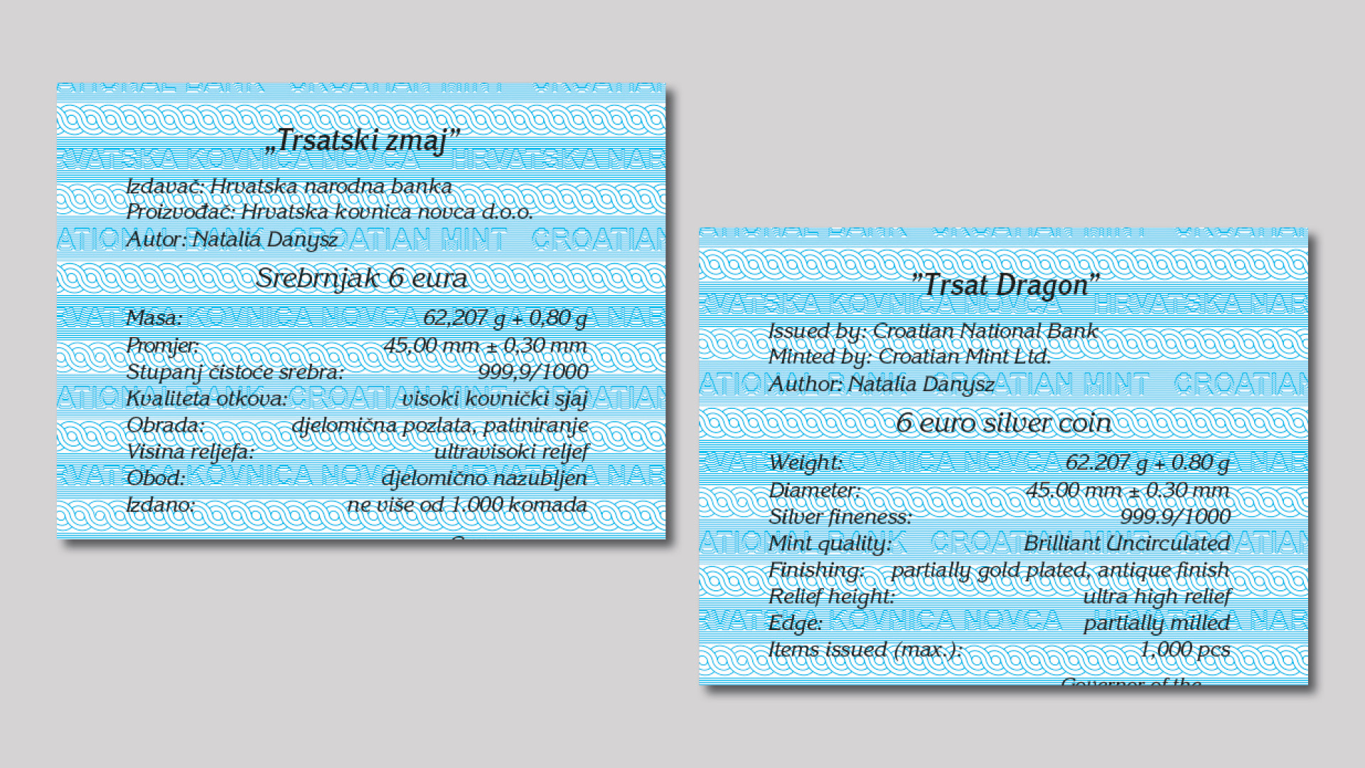 The Croatian National Bank issues the “Trsat Dragon” silver collector coin in the 6 euro denomination, featuring motifs that represent the sculpture of the “Trsat Dragon”, a part of the cultural heritage of the Republic of Croatia.