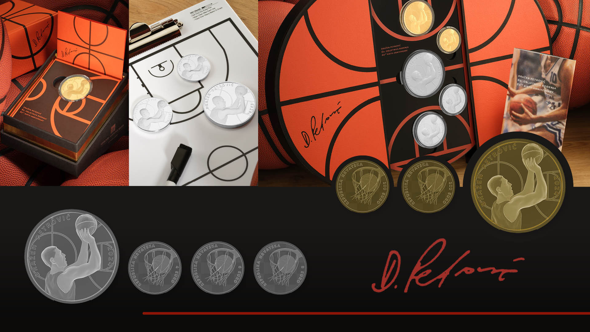The Croatian National Bank issues "Dražen Petrović" gold and silver numismatic coins with commemorative motifs featuring Croatian basketball player Dražen Petrović who, as one of the greatest Croatian, European and world basketball players, left a very significant mark in world basketball. The gold numismatic coins are issued in the 200 and 100 euro denominations and the silver coins in the 8, 6 and 4 euro denominations.