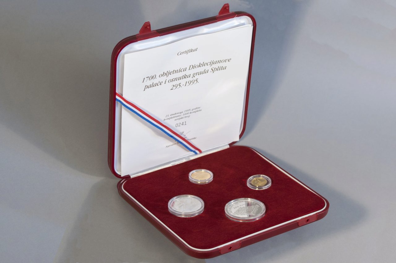In cooperation with Zagrebačka banka d.d., Zagreb, the Croatian National Bank issued commemorative 1,000 and 500 kuna gold coins and commemorative 200 and 100 kuna silver coins to mark the 1700th anniversary of the Palace of Diocletian and the founding of the City of Split.