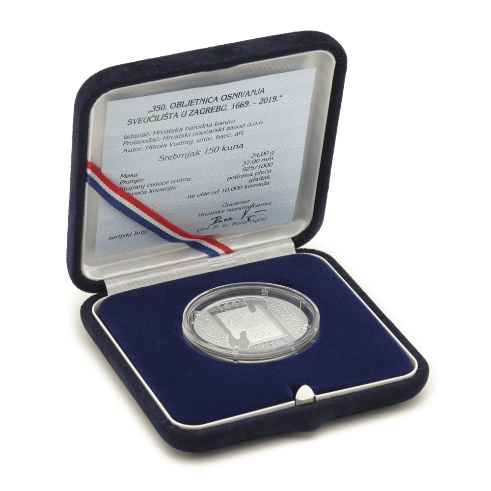 The Croatian National Bank has issued commemorative gold and silver coins and their numismatic sets marking the 350th anniversary of the founding of the University of Zagreb (1669 – 2019), an important historical, political, scientific and cultural event for the Republic of Croatia.