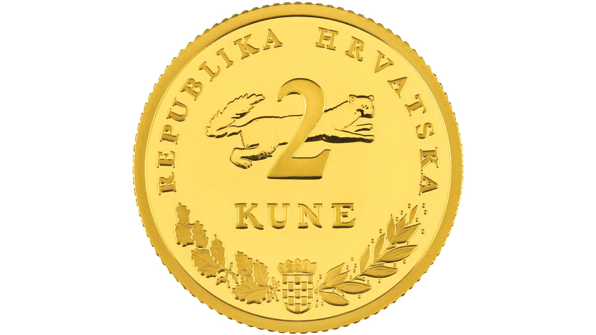 The Croatian National Bank has issued a commemorative 2 kuna gold coin within the Gold Kuna series with the motif of the 2 kuna circulation coin. Minted in uncirculated condition, the coin is released for sale on 1 December 2021.
