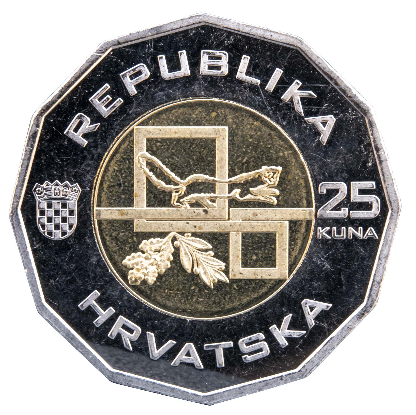 Promjer i težina: Prigodni optjecajni kovani novac od 25 kuna ima oblik pravilnog dvanaesterokuta, kojemu opisana kružnica ima promjer od 32 milimetra s mogućim odstupanjima kako je navedeno za jezgru i za prsten. Prigodni optjecajni kovani novac od 25 kuna ima masu od 12,75 grama s mogućim odstupanjem od ±3,5%. Jezgra mu ima promjer od 18 milimetara s mogućim odstupanjem od ±0,05 milimetara i masu od 4,05 grama. Prsten ima unutarnji promjer od 18 milimetara s mogućim odstupanjem od ±0,05 milimetara i masu od 8,70 grama.