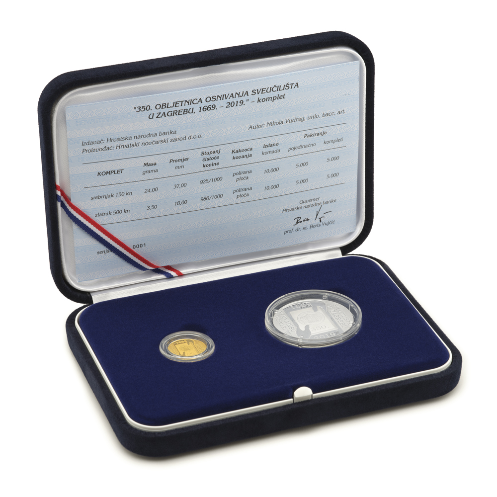 Hrvatska narodna banka izdala je prigodni zlatni i srebrni kovani novac, kao i njihov numizmatički komplet, u povodu 350. obljetnice osnivanja Sveučilišta u Zagrebu (1669. – 2019.), povijesnoga, političkog, znanstvenog i kulturnog događaja važnog za Republiku Hrvatsku.