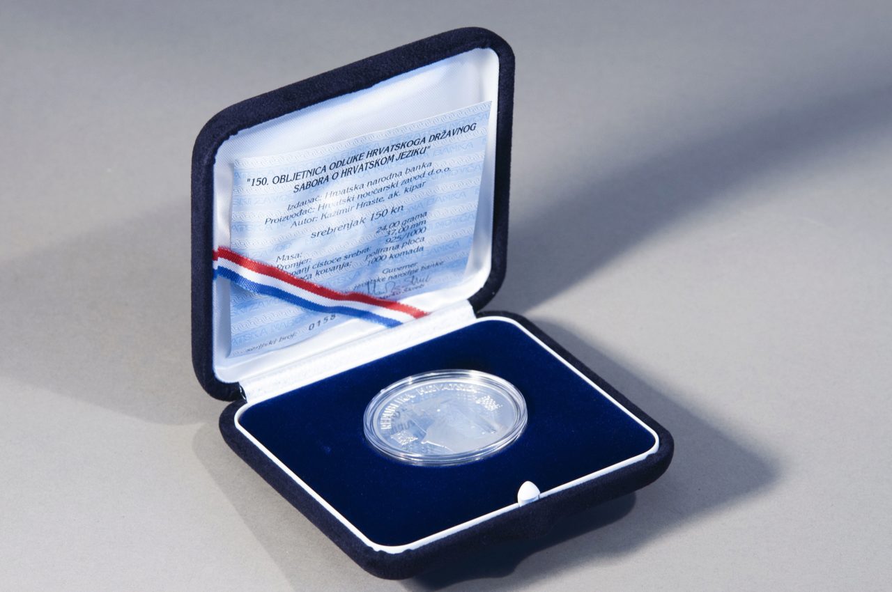 Hrvatska narodna banka izdala je prigodni srebrni kovani novac kako bi se trajno obilježila 150. obljetnica povijesne odluke o ponovnom uvođenju hrvatskog jezika umjesto latinskog u politički i javni život Hrvatske, a koju je Hrvatski državni sabor donio 23. listopada 1847. Prigodni srebrni kovani novac izrađen je u specijalnoj tehnici kovanja kakvoće polirane ploče, a pušten je u prodaju 25. lipnja 1998.